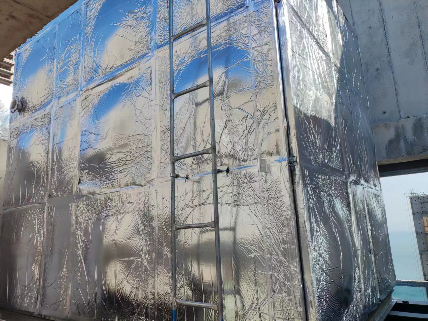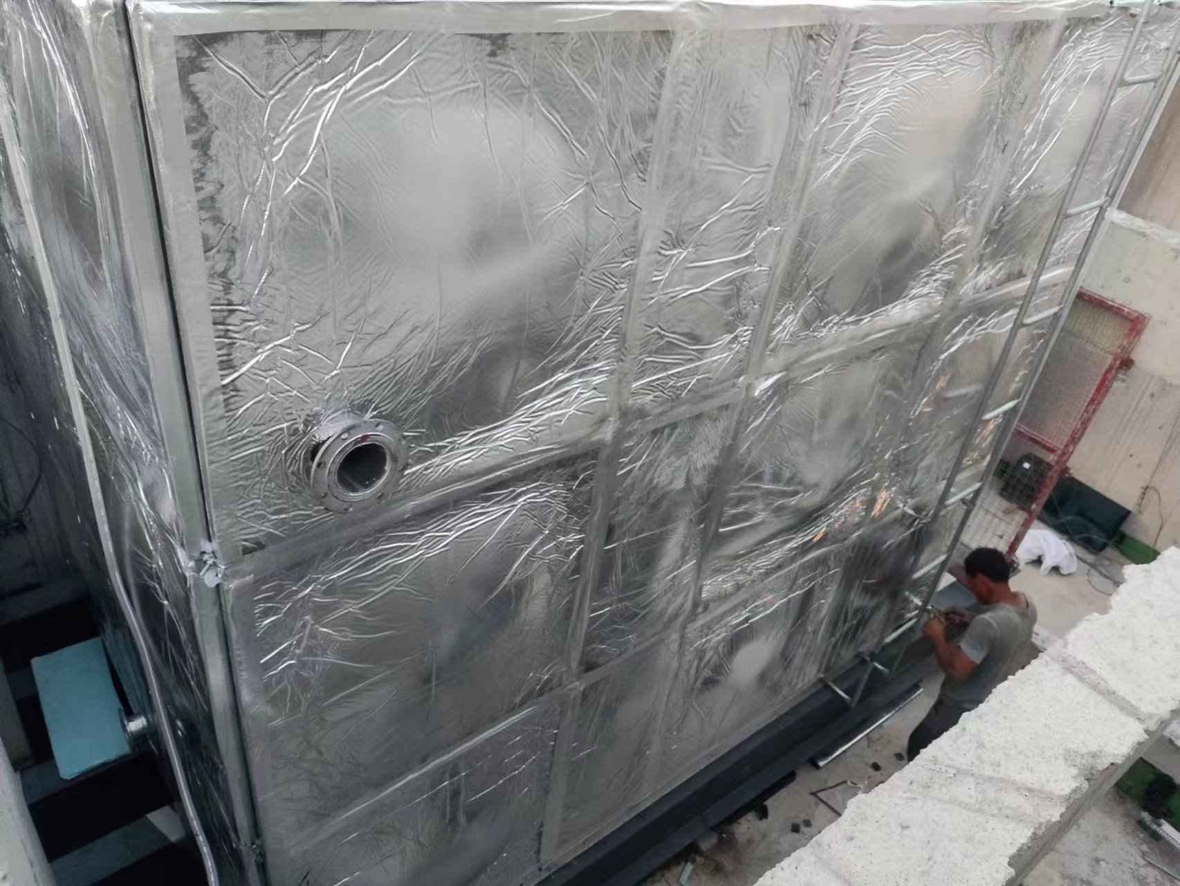 遼寧省大連市碧桂園東港國際樓頂,2臺串聯消防橡塑鋁箔布保溫水箱
