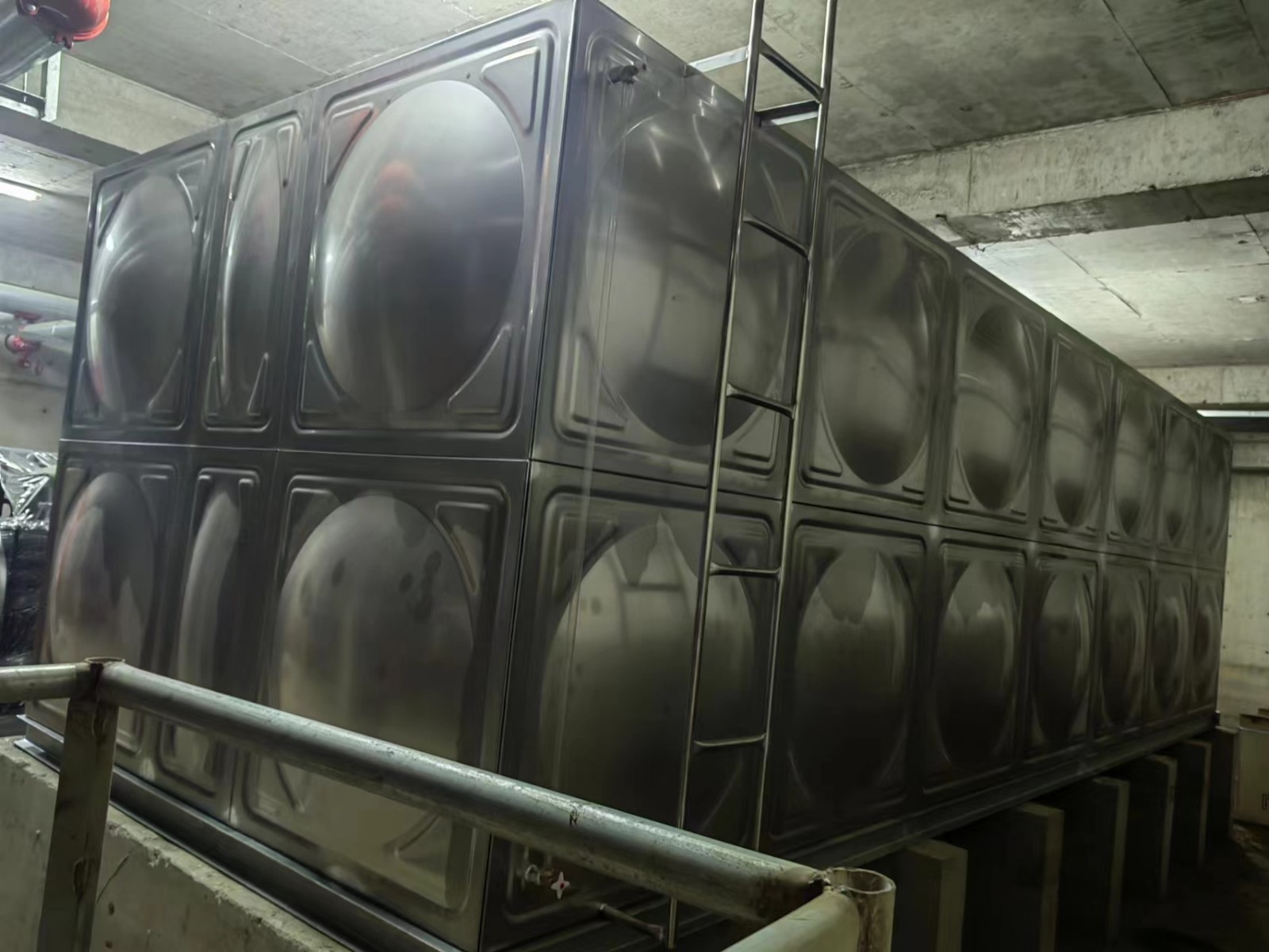 我司承接的河北省廊坊市榮盛首府給水水箱項目項目,已安裝試水完畢。不銹鋼水箱既貯存冷水,也能貯存熱水,耐酸、耐堿、不易滲漏,不易變形、耐腐蝕。適用于醫院,賓館,學校,居民樓及食品加工,醫療衛生等對水質要求加高的場所。
