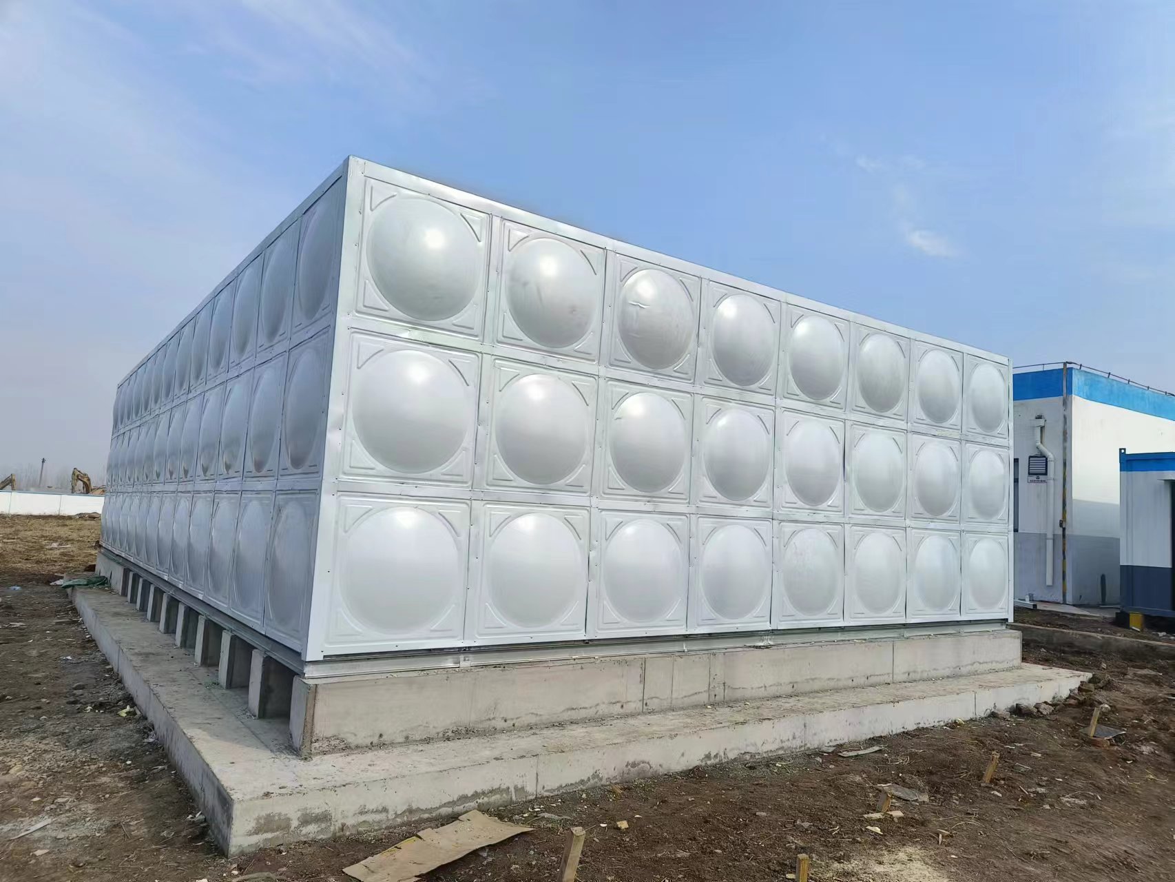 我公司承接的山東省棗莊市泥溝鎮馮湖三峽光伏電站項目箱泵一體化水箱已經安裝試水完成。裝配式鍍鋅鋼板水箱制造、安裝不受土建施工影響,不用焊接設備,水箱表面采用熱鋅防腐處理,使水質不受二次污染,并符合建筑產品標準化、系列化、工廠化要求。因其優秀的抗氧化能力較不銹鋼價格低的性能的越來越多的應用到實際生活中。