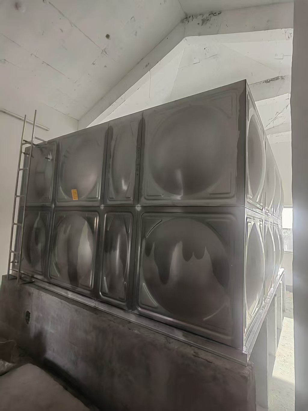 不銹鋼水箱設(shè)置會將水滴上的露珠集中在水箱上,然后流到排水的地方,這樣可以防止槽鋼濕潤且不生銹。