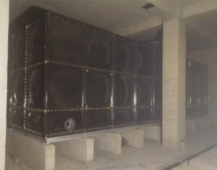 為了防止搪瓷水箱外脹在箱體內加縱向和橫向不銹鋼拉桿,箱底板、側壁和箱頂板均由板塊組裝而成,底板設泄水管,側壁設進水管,出水管和溢水管。搪瓷水箱側面設爬梯,箱頂設有人孔和通氣孔,由于采用組裝方法,搪瓷水箱的制作和安裝均不受土建施工影響,不用焊接設備和起重設備,改善了勞動條件,板塊制造工藝簡單。