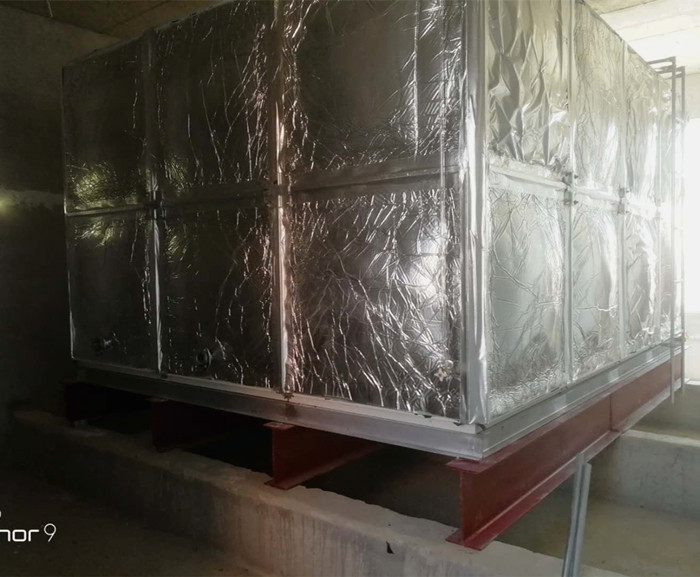 橡塑保溫玻璃鋼水箱現場圖:客戶根據自己實際要求設置的條形基礎,安裝工人到達現場就可以直接焊接槽鋼底座,不耽誤工期。騰翔公司具有專業的安裝團隊,保障了安裝水箱的質量和效率。玻璃鋼橡塑保溫水箱是適合用在室內的保溫水箱,保溫效果好,價格適中。